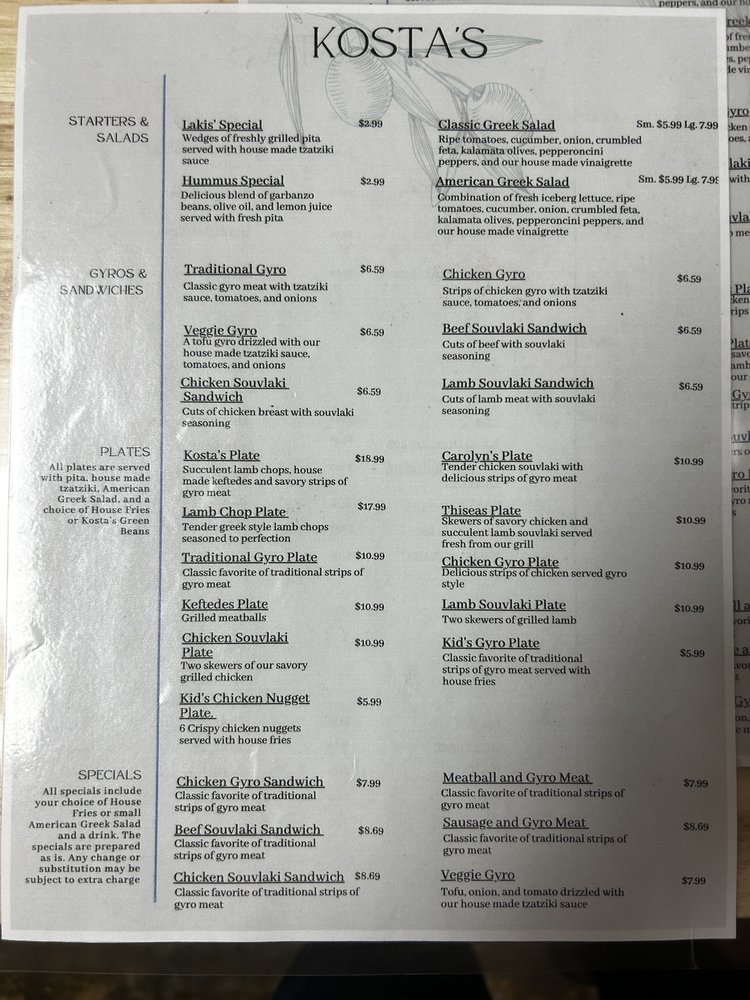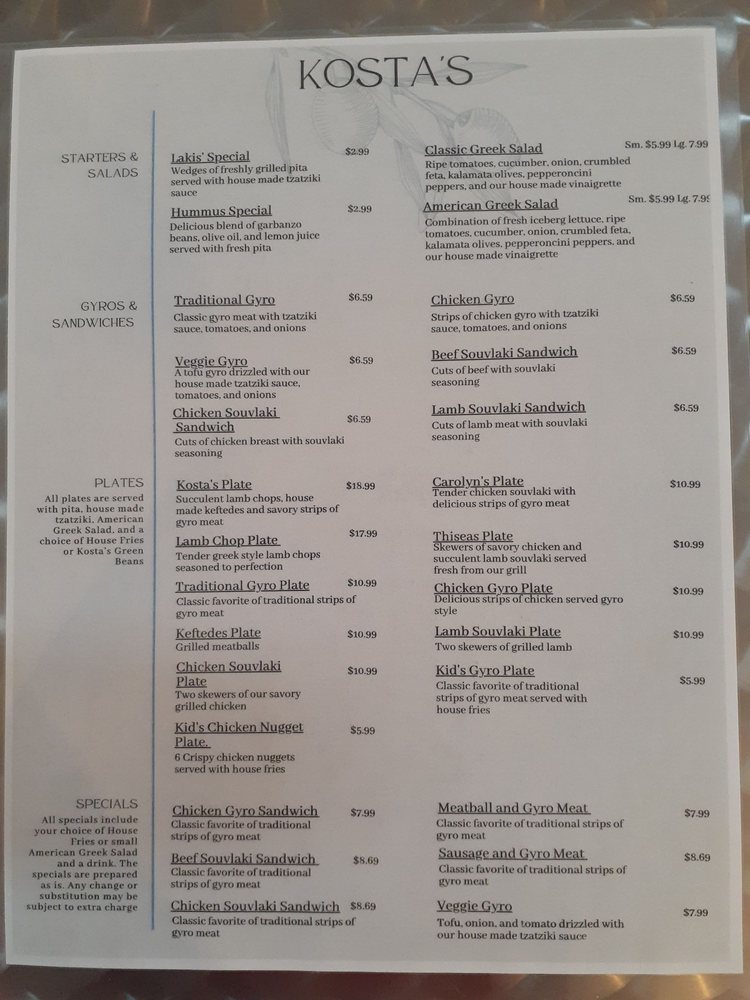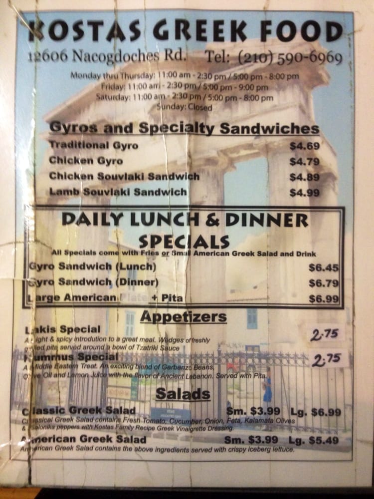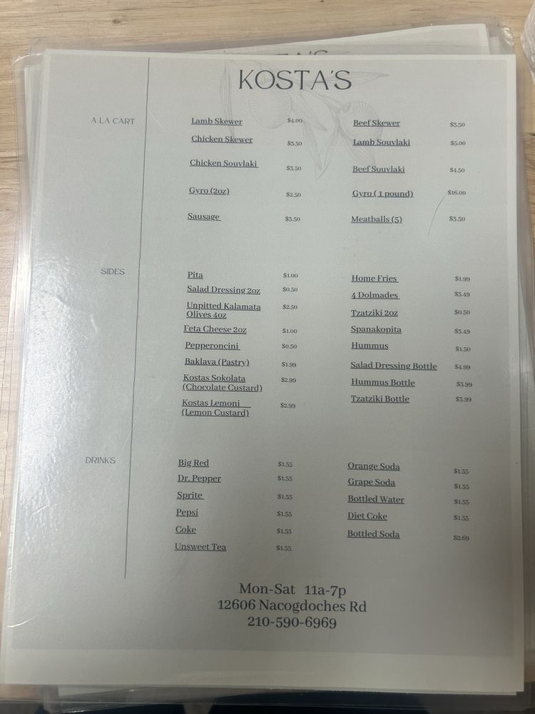 Kosta's Greek Food in San Antonio offers a variety of Greek dishes with a focus on quality and taste. Customers rave about the delicious chicken gyro, roast lamb, and flavorful hummus. The restaurant has undergone a renovation, creating a clean and inviting atmosphere. With options for delivery, takeout, and catering, Kosta's is convenient for any occasion. The menu features a range of appetizers, entrees, and Greek specialties, satisfying both vegetarians and meat-lovers alike. Reviews praise the attentive staff, reasonable prices, and the overall dining experience. From the crispy salads to the tender meat patties, every dish is made with care and passion. Don't miss out on this hidden gem for authentic Greek cuisine in San Antonio. Visit Kosta's Greek Food for a memorable dining experience.